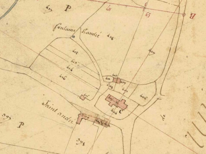 Lohéac - Ancienne église de Saint-André, dessin de P. Valo. In : BANÉAT, Paul. Le Département d'Ille-et-Vilaine... Rennes : Librairie Moderne J. Larcher, 1927-1929.