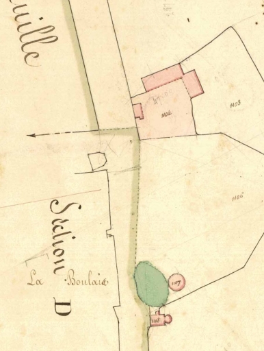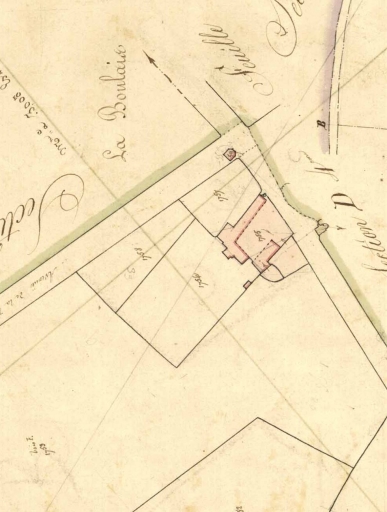Feuille cadastrale D8, dite de la Boulais, par Cheval géomètre, échelle 1/1250e (A.D. Ille-et-Vilaine : 3P 5277).