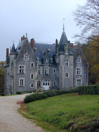 Construit autour de 1900 par l'architecte Henri Mellet pour M. du Halgouët, le château du Val s'élève au sud de l'emplacement de l'ancien manoir du Val ; détruit dans la seconde moitié du 19e siècle, ce dernier était composé de deux corps de bâtiments perpendiculaires, comprenait une chapelle et était entouré de douves. Il avait appartenu aux Peschart, seigneurs de la Durantais au 17e siècle, puis aux de la Saoullaye en 1734 et 1789. Le château actuel se signale tant par une architecture néo-gothique très soignée où le contexte d'implantation contribue à sa mise en scène, que par l'ensemble parfaitement homogène que composent ses nombreuses dépendances. Il est à ce titre caractéristique de ce qu'est un château moderne, où toutes les composantes du confort et de la vie mondaine (chasse à courre, tennis) sont intégrées au programme architectural.