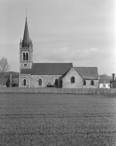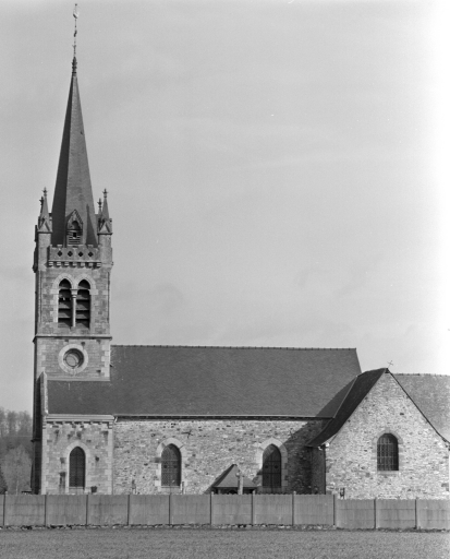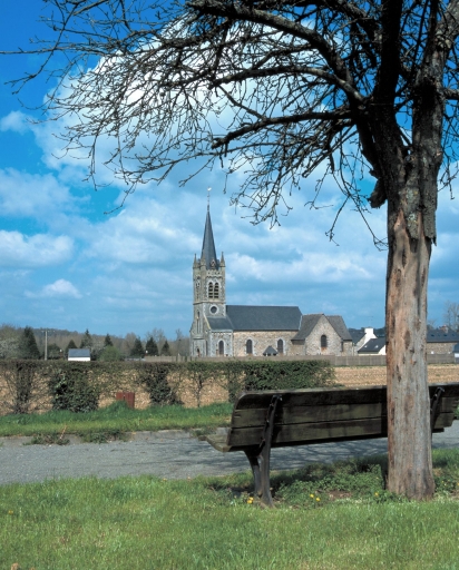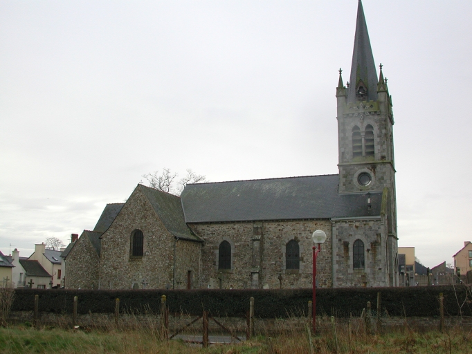 L'église à l´origine priorale fut donnée en 1040 à l'abbaye Saint-Florent-de-Saumur, puis au 12e siècle à l'abbaye de Saint-Sulpice-la-Forêt. Du 12e siècle subsisteraient des vestiges d´appareil roman dans le mur nord de la nef. La porte sud protégée par un auvent est quant à elle datable du 15e siècle. Les chapelles formant transept sont datées 1743 et 1744, date probable de la reconstruction du choeur. Le clocher porche d'Alfred-Louis Frangeul est élevé en 1876 (porte la date) ; l'architecte refait également les ouvertures de la nef. Un exhaussement de celle-ci est également mentionné en 1883.