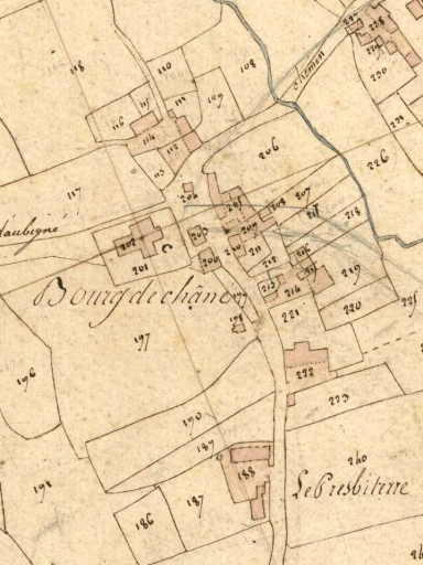 Feuille cadastrale de la section B1 dite du Bourg. Levée par Lebreton, géomètre, [1826], échelle 1/2500e. (A.D. Ille-et-Vilaine : 3 P 5298).