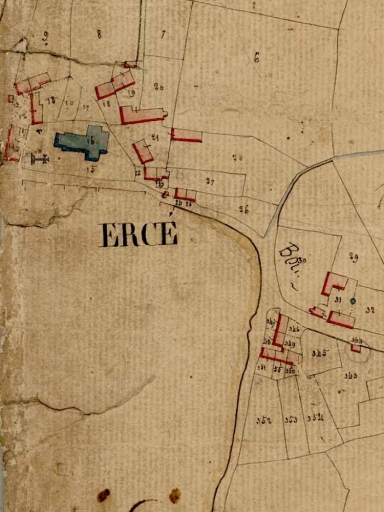 Une église paroissiale existait à Ercé dès la première moitié du XIe siècle puisque à cette date, le duc de Bretagne Alain III faisait don d'un tiers du sanctuaire aux moines de Marmoutiers. L'ancienne église qui subsista jusqu'au milieu du XIXe siècle et que l'on voit figurée sur le cadastre de 1826 paraît avoir été réédifiée au moins en partie en 1465. Deux chapelles portant les armes des seigneurs du Bordage y avaient été ajoutées au 17e siècle. A l'occasion de la reconstruction, intervenue entre 1847 et 1849 sur les plans de l'architecte Jean-Marie Anger de la Loriais, le sanctuaire fut désorienté, c'est à dire que le choeur fut bâti à l'ouest contrairement à la tradition. Et le clocher-porche fut érigé en 1867 sur les plans de l'architecte Lagarde, à la place de l'ancien choeur.