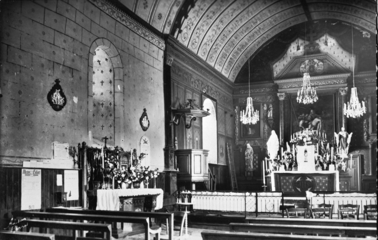 Contrairement aux autres églises du même plan, la délimitation du chœur et de la nef n’est pas marquée par un arc en plein cintre ; cet arc diaphragme a probablement disparu. On voit dans le tiers oriental du mur sud que le choeur, initialement plus bas a été surélevé pour être aligné en hauteur avec la nef.