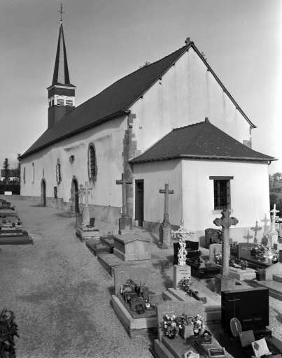Eglise romane du 11e ou 12e siècle, élevée par l'abbesse de Saint-Sulpice et érigée en paroisse au 13e siècle dont subsiste le volume général et les fenêtres nord de la nef. Elle a été transformée à maintes reprises dont les baies aux 15e, 16e, 17e siècles. La façade occidentale a été reconstruite en 1675. Le choeur a été également remanié dans la 2e moitié du 18e siècle. Il a perdu toutefois son décor peint de cette époque visible sur la carte postale ancienne ainsi que celui du lambris, peint au 19e siècle. Ajout d'une sacristie contre le chevet au 19e siècle. A signaler : La croix faîtière du chœur, probablement un remploi, dont les motifs accusent une grande ancienneté. Le clocher s'élevait originellement au centre de l'édifice, il a été déplacé en 1855 à son emplacement actuel.