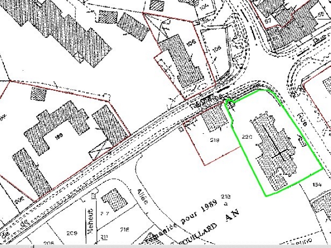 Feuille cadastrale de la section A1 dite du bourg. Levée par Beuscher, géomètre, 1818, échelle 1/2500e. (A.D. Ille-et-Vilaine : 3 P 5557).