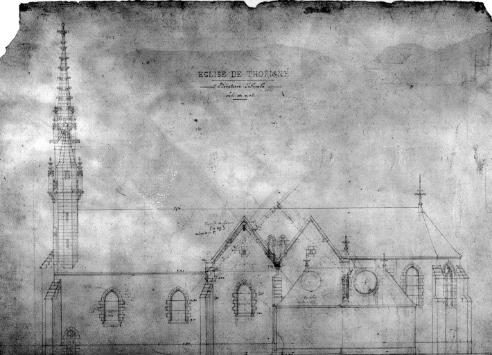 Elévation latérale. Dessin non signé, [s.d.], crayon sur calque. (A.D. Ille-et-Vilaine : 35 Fi, fonds Arthur Regnault).