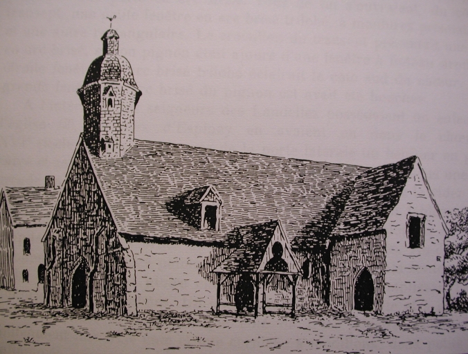 L'ancienne église. Dessin par Huguet d'après un croquis de Paul Banéat. In : BANÉAT, Paul. Le Département d'Ille-et-Vilaine. Histoire, Archéologie, Monuments. Rennes : Librairie Moderne J. Larcher, 1927-1929.