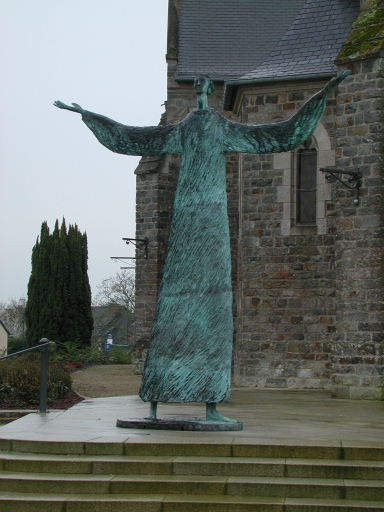 Cette petite église, inspirée du plan irrégulier des modèles régionaux, est un des exemples les mieux maîtrisés de la simplicité et de l´efficacité auxquelles aspire A. Regnault dans ses « projets modestes ». Elle se démarque des réalisations plus conventionnelles de Gosné et d´Acigné. Le vaisseau unique est animé, au Nord, par la Chapelle des Fonts. L´architecte avait utilisé ce procédé à Saint-Aubin-d´Aubigné : « le baptême est d´une telle importance dans l´Eglise que je trouve la même convenance à placer les fonts baptismaux dans une absidiole sur un des côtés de la nef, en rompant la symétrie ce qui semble augmenter son importance. » Au Sud, un bras de transept et une sacristie rappellent la volumétrie des églises médiévales. Le chœur à pans coupés et l´utilisation de voûtes dites angevines sont des habitudes de l´architecte.