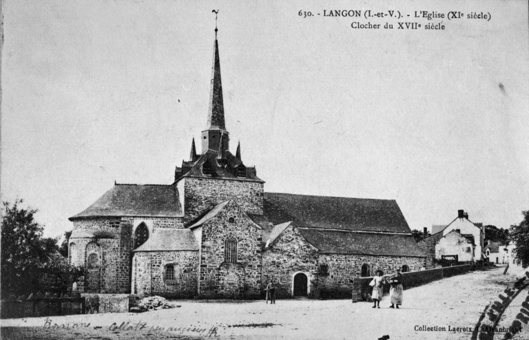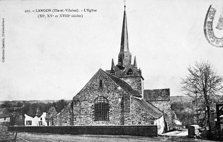 493 - LANGON (Ille-et-Vilaine). L'Eglise (XIe XVe et XVIIIe siècles). Carte postale collection Lacroix, Châteaubriant [s.d], (Archives départementales d'Ille-et-Vilaine : 6 Fi).