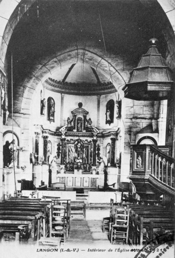 LANGON (I.-et-V.). Intérieur de l'église avant 1921. Carte postale, Edit. [Fouchin], St-Sulpice, [s.d], (Archives départementales d'Ille-et-Vilaine : 6 Fi).