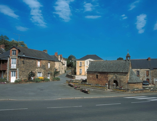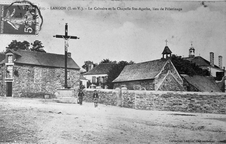 LANGON (I.-et-V.). Le calvaire et la chapelle Ste-Agathe. Carte postale, Gaby : [s.l], [s.d], (Archives départementales d'Ille-et-Vilaine : 6 Fi).