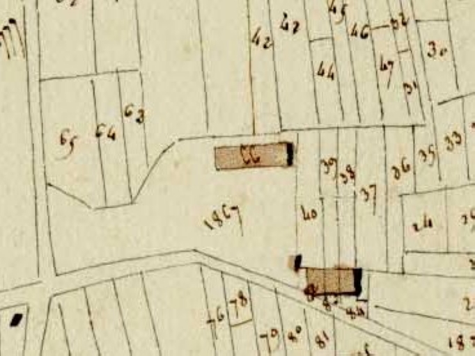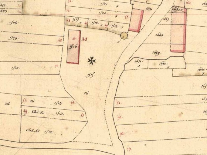 Plan cadastral dit napoléonien. Section B dite de la Chapelle de Gavrain, 7e feuille du n°1369 au n°1823, échelle 1/1000e, Levée par Ferré aîné, Géomère 1ère csse, 1843. Archives départementales d'Ille-et-Vilaine, Rennes.