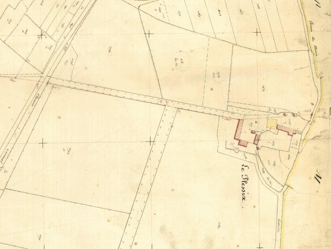 Ille-et-Vilaine. Commune de Bains-sur-Oust. Section M dite du Bourg, feuille 7, plan cadastral napoléonien, échelle : 1/20 000e, par le géomètre Demay, 1847. (A.D. Ille-et-Vilaine : 3 P 5245).