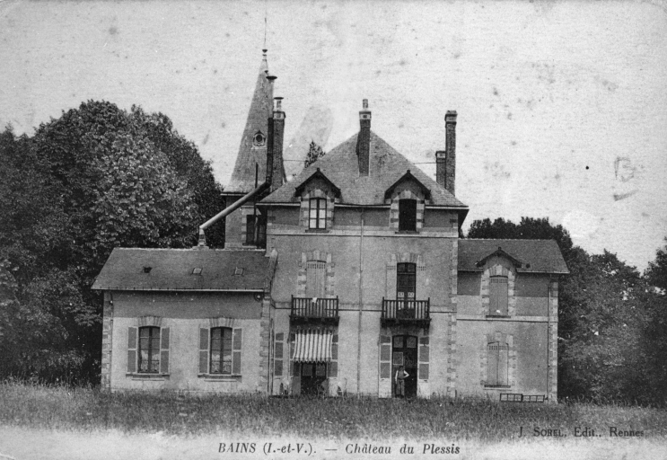BAINS (I.-et-V.). - Château du Plessis, carte postale, Rennes : J. Sorel, Edit., [s.d] (Archives départementales d'Ille-et-Vilaine : 6 Fi).