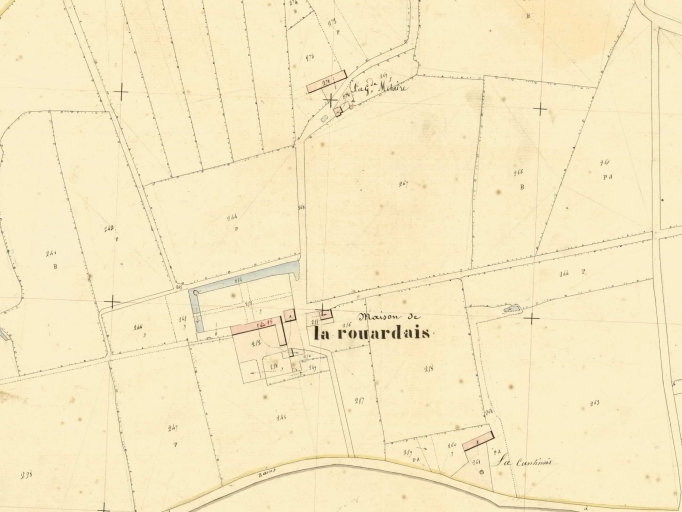 Ille-et-Vilaine. Commune de Bains-sur-Oust. Section F dite de la Rouardais, feuille 3, plan cadastral napoléonien, échelle : 1/2 000e, par le géomètre Cuault, 1847. (A.D. Ille-et-Vilaine : 3 P 5245).