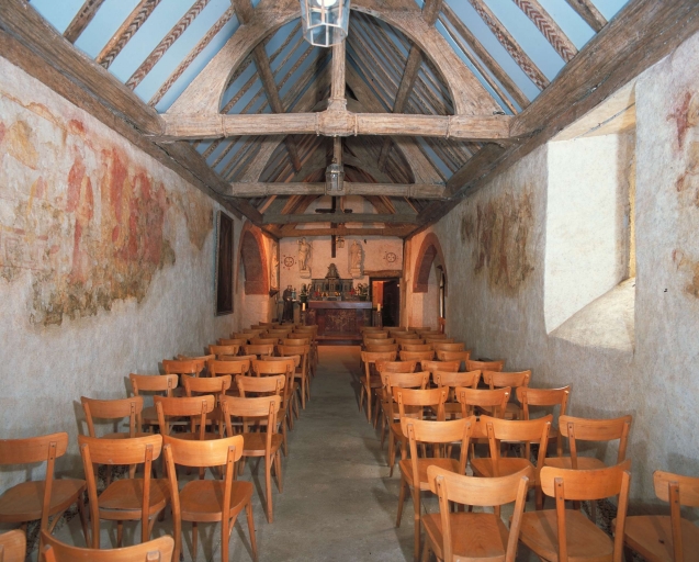 Plan en croix latine. 1 vaisseau. Couverture : toit à longs pans ; noue ; pignon couvert. Campanile en façade ; chevet plat. Technique décor : peinture. Eléments remarquables : charpente, décor peint.