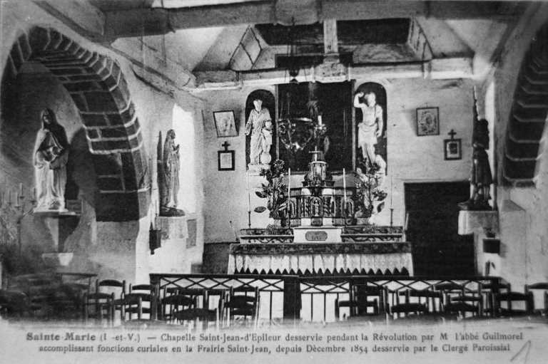 SAINTE MARIE (I et V). Chapelle Sainte-Jean-d'Epileur desservie pendant la Révolution par M. L'abbé Guilmorel accomplissant fonctions curiales en la frairie Saint Jean, depuis décembre 1854 desservie pa le clergé paroissal, carte postale, [s.n., s.d.] (A.P. Inventaire Bretagne).