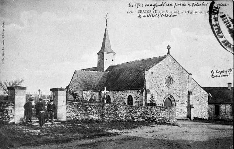 559. BRAINS (Ille-et-Vilaine). L'Eglise et le cimetière, carte postale, collection Lacroix, Chateaubriant, [s. d.] (A.D. Ille-et-Vilaine : 6 Fi).