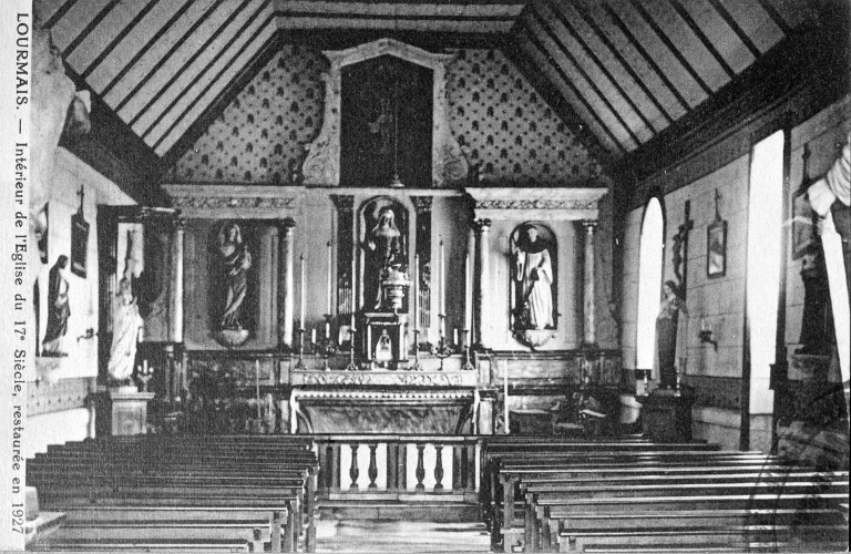 Lourmais. intérieur de l'église, restaurée en 1927, sans éditeur (A.D. Ille-et-Vilaine : 6Fi).