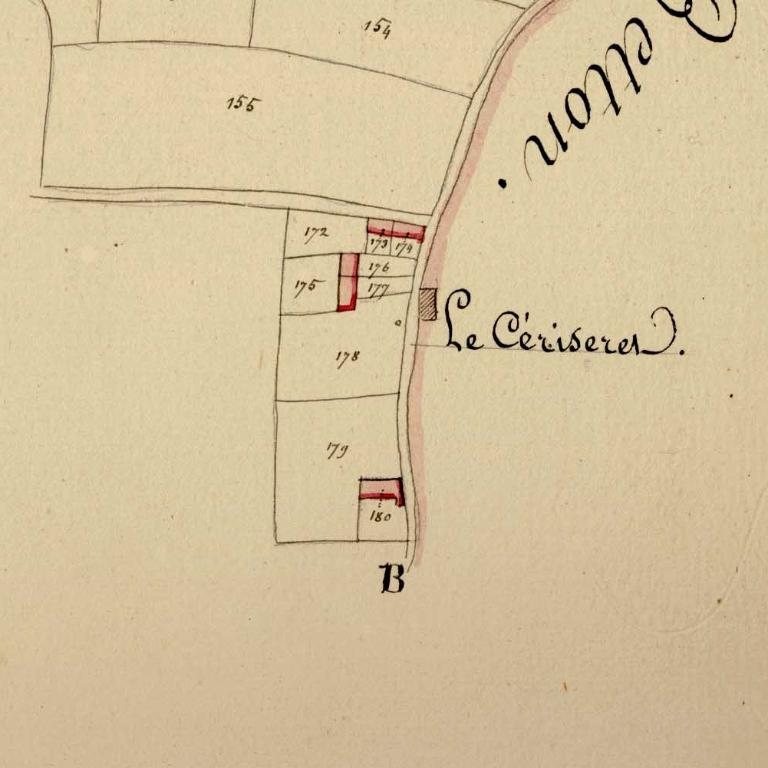 Plan cadastral parcellaire de la commune de Saint-Grégoire, dressé en 1819 par M. Lesné, géomètre du cadastre. (A.D. Ille-et-Vilaine : 3 P 5612).