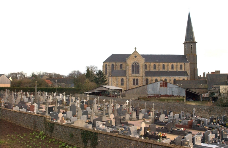 L'ancienne église, principalement du 13e siècle, avait été en partie reprise au 14e siècle. Le portail du 14e siècle de l'ancien enclos a été remonté à l'entrée du cimetière actuel. L'église actuelle a été reconstruite à partir de 1883 sur les plans de l'architecte Alfred-Louis Frangeul (date portée sur le pignon du transept nord). L´édifice est consacré le 29 octobre 1887. Le clocher quant à lui est réalisé entre 1955 et 1959.