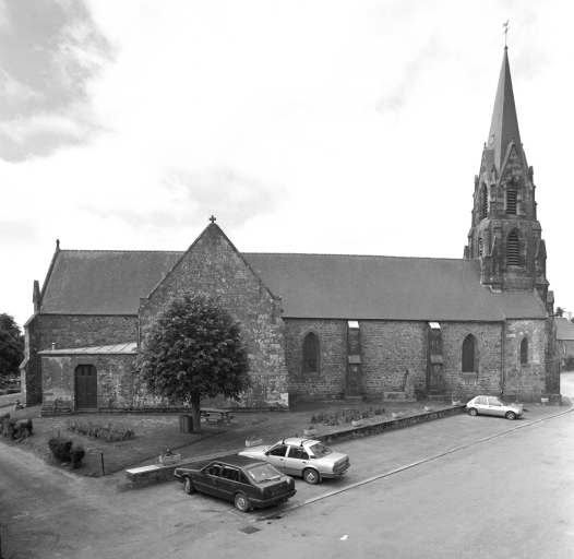 Une église paroissiale est mentionnée dès le 11e siècle, à l'occasion de la donation qu'en fit vers 1066 le seigneur Main au bienheureux Guillaume, abbé de Marmoutiers en témoignage de reconnaissance pour la guérison de ses fils. Par une coïncidence prémonitoire, le sanctuaire était déjà dédiée à l'apôtre des Gaules. Au début du 16e siècle, sous l'impulsion probable de Michel Thierry ou son fils François des seigneurs de la Roche et réputés patrons fondateurs, le sanctuaire est rebâti, sans doute intégralement. Le chœur à chevet plat et les croisillons du transept qui remontent à cette époque ont été conservé lors des travaux du 19e siècle. Une restauration partielle dût intervenir en 1776 comme en fait foi la date gravée sur le contrefort sud du chevet. Le défaut d'entretien de l'édifice durant la tourmente révolutionnaire, l'accroissement démographique des fidèles et la volonté du clergé d'inscrire la reconquête spirituelle de la période concordataire dans le monument incita sans doute l'abbé Urbain Chauvin qui déssert la paroisse de 1837 à 1868 à entreprendre sa restauration. Charles Langlois, architecte diocésain, dresse les plans du clocher-porche et de la nouvelle nef édifiés entre 1843 et 1858 dans le style néogothique alors à la mode. Lors d'une seconde campagne qui débute en 1857, les baies du chevet et du transept sont reprises. Sans doute faut-il attribuer à ce second chantier les deux salles basses flanquant le chœur, la première servant de sacristie et la seconde destinée sans doute aux réunions de la fabrique.