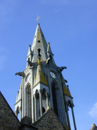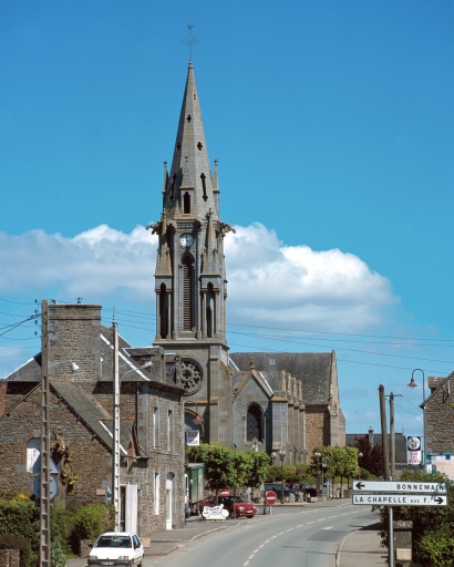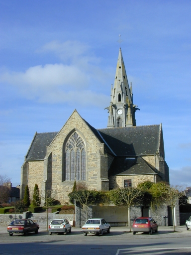 L´église en partie reconstruite au 19e siècle conserve toutefois des éléments anciens datables de différentes périodes ; comme la baie du mur sud du chœur datable de la fin du 14e siècle ou du début du 15e siècle et la porte en arc brisé de la façade occidentale. La charpente de la nef de la fin du 15e siècle a également été conservé . L´agrandissement de l´église débute en 1840 par la construction de deux chapelles formant transept, sous la direction de Charles Langlois. Les bas côtés sont construits en 1862 (date portée) sur les plans de l'architecte Leroyer établi à Saint-Servan qui construit également la façade occidentale et le clocher-porche.