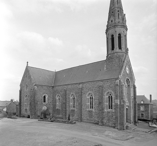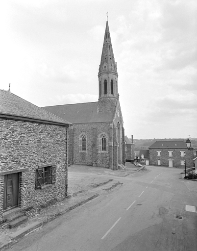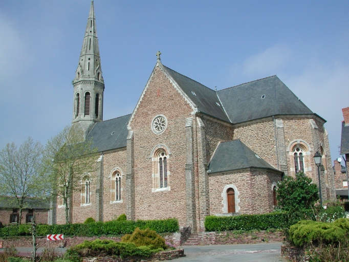 L'ancienne église priorale dépendant de l'abbaye Saint-Jacques de Montfort construite par Jehan de la Villehue, seigneur de Monterfil à l'emplacement de l'actuelle chapelle Saint-Genou est détruite. Un des chapiteaux portait la date de 1576. [Il est conservé dans le parc du château du Logis]. L'église paroissiale actuelle a été construite sur les plans de l'architecte Jacques Mellet entre 1858 et 1864. La tribune a été exécutée vers 1870 par Bellanger. Tour construite en 1874 sur les plans de Jacques Mellet par Ruault, entrepreneur.