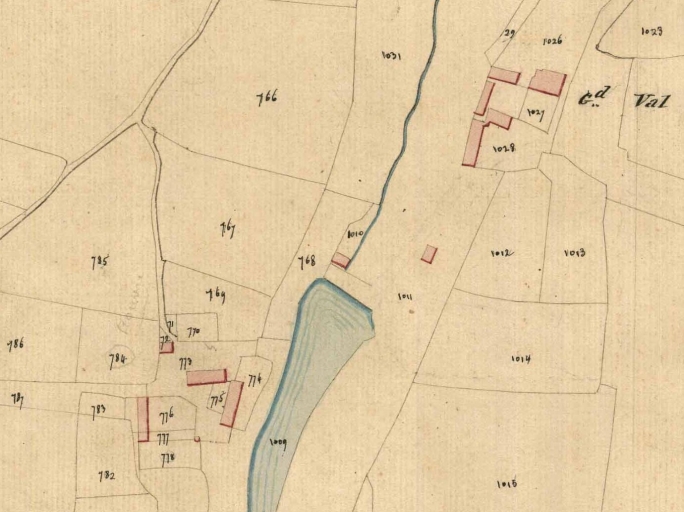 Feuille cadastrale de la section H2 dite du Grand Val, par Beuschet géomètre, [s.d.], échelle 1/2500e (A. D. d'Ille-et-Vilaine).