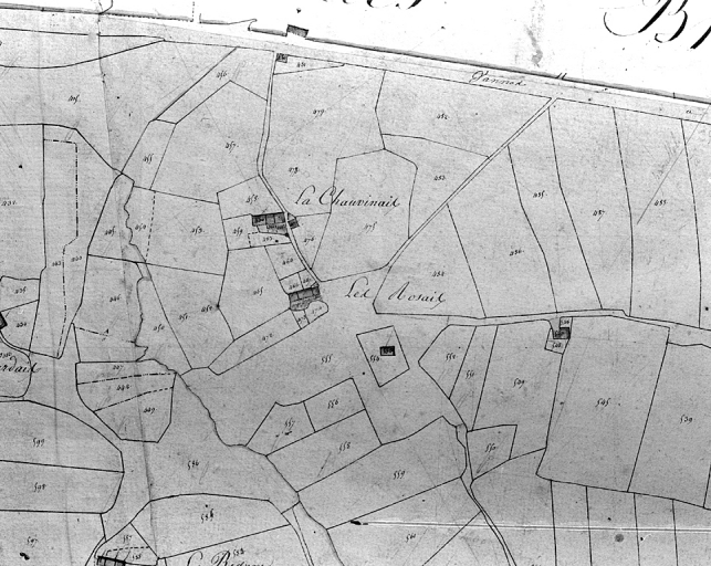 Ille-et-Vilaine. Commune de Plélan-le-Grand. Plan cadastral dit "napoléonien". Section E dite de Lanlevrier, 2ème feuille, plan cadastral, 1823, échelle : 1/2 500ème (A.D. Ille-et-Vilaine : 3 P 5449).