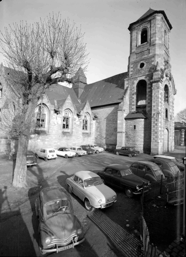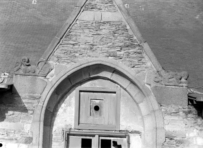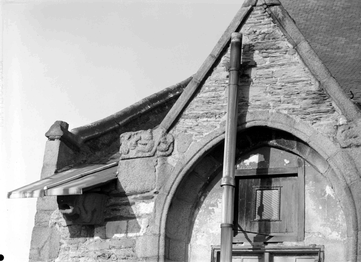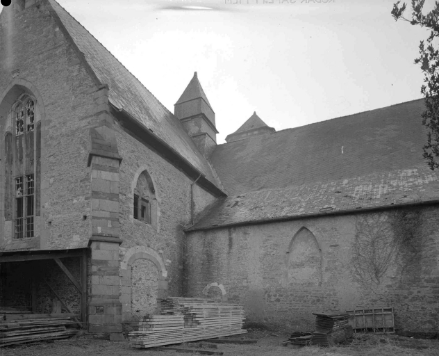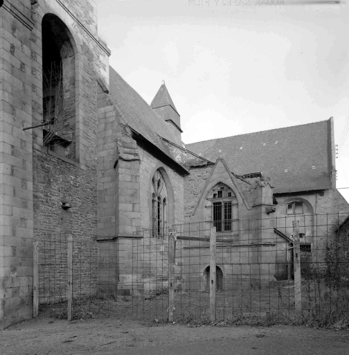 Plan en croix latine, lambris de couvrement pour la nef et le transept, fausses voûtes d' ogives en bois pour le bas-côté sud, toit en pavillon pour la tour du clocher, façade latérale à pignons multiples, clocher latéral, chevet plat, style gothique, clocher de style baroque, confirmée par une date portée (1553) sur la fenêtre. La niche de la sixième pile nord porte la date de 1563. Une inscription est portée sur l lambris du transept nord : En l'an 1670 a été posé le lambris de cette chapelle. Le recteur noble et discret Pierre de Lorgeril Trésoriers en charge. Maître François Doublart notaire roial et H Homme Ian Iovault".