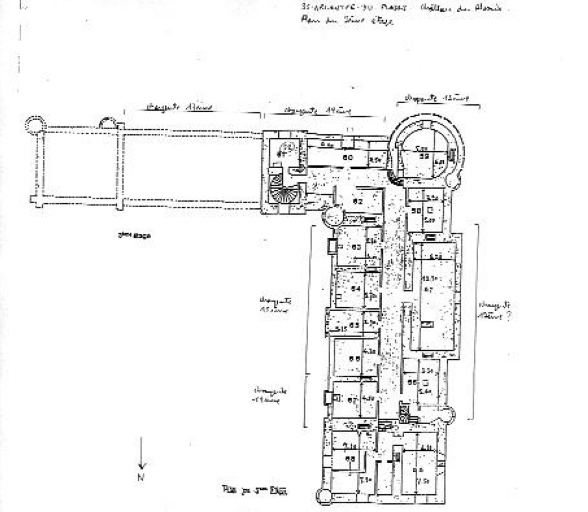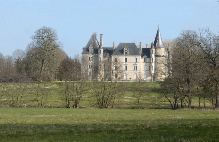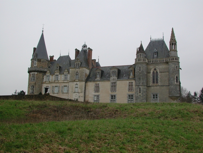 Rédaction de Laure Denis chargée d'études documentaires à la Conservation Régionale des Monuments Historiques. Transcription partielle du dossier consultable au Centre de Documentation du Patrimoine : Très grand château dont on peut repérer comme suit les différentes étapes de construction : le château ancien correspond à la base du pavillon nord, la moitié est du corps de logis principal et la tour ronde à l'angle sud-ouest. A la fin du 16e siècle, début 17e siècle, le pavillon est augmenté en hauteur, et on lui fait un pendant au sud. Au même moment, un grand commun est construit au sud de la cour, à l'emplacement de l'aile en retour actuelle qui a réutilisée en partie ce bâtiment. Au début du 18e siècle, on double le logis principal vers le jardin, et on procède à de nombreux réaménagements intérieurs. Vers 1840, le logis est rhabillé dans le style néo-renaissance ; et vers 1870, on réaménage quelques pièces dans le logis principal en même temps qu'est reprise, agrandie, et complètement repensée l'aile en retour à l'extrémité de laquelle on fait une chapelle (bénite en 1879). Le château dispose de 22 hectares de parc paysager avec un système hydraulique encore en place. Il faut remarquer la présence de beaux communs parmi lesquels on peut distinguer l'ancien chenil-logement du 'piqueux' en forme de pagode chinoise aujourd'hui en ruine, et l'ancien moulin tranformé en fabrique-laverie avec son dispositif pour faire bouillir le linge.