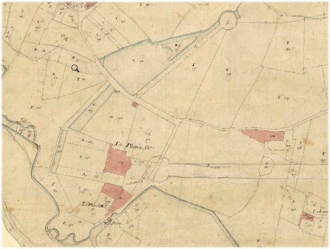 Plan géométrique et parcellaire de la commune d'Argentré, section A1 dite du Bourg, Jouard et Lemains géomètres, [vers 1810], échelle 1/2500e (A. D. d'Ille-et-Vilaine : 3 P 5239).