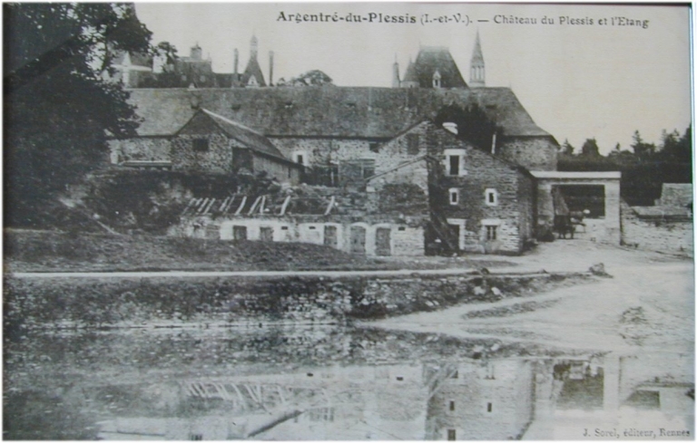 Argentré-du-Plessis (I.-et-V.). - Château du Plessis et l'Etang, carte postale, J. Sorel, éditeur, Rennes, [s.d.] (Mairie d'Argentré-du-Plessis).