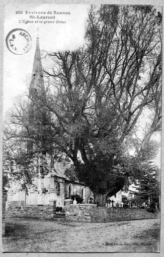 [1900 ca]. 280 - Environs de Rennes. Saint-Laurent. L'église et le grand Orme, carte postale, Rennes : E. Mary-Rousselière édit., [s.d] (A.D.35 : 6 Fi).