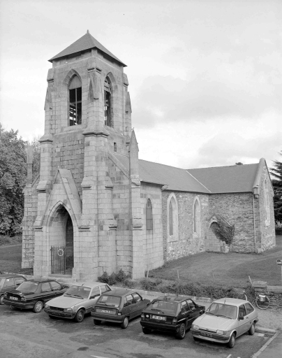 L´édifice de plan en croix latine à vaisseau unique et chevet plat est construit en moellons de schiste et couverte d´ardoises. Des traces de surélévation sont visibles sur les pignons découverts. Le clocher-porche de style néo-gothique, accolé au bas de la nef, est construit en granite, appareillé en pierre de taille, et sommé d´un toit en double bâtière couvert d´ardoises. La sacristie en appentis est située au nord du choeur.
