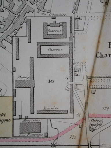 En 1820, naît le projet de construire à Rennes une grande maison centrale pour toute la Bretagne comprenant une prison pour femmes et hommes. En 1822, l’État rachète alors pour la somme de 140 000 francs, l’ancien couvent du Colombier aux 6 ou 7 propriétaires auxquels il appartient. De 1825 à 1830, on y entreprend de grands travaux pour ce projet mais en 1830, suite à la Révolution de Juillet, l’argent vient à manquer. Le projet de prison est abandonné et finalement une partie des bâtiments inoccupés du Colombier est transformée en écuries puis définitivement en caserne d’artillerie. En 1832, le terrain est cédé au ministère de la guerre.