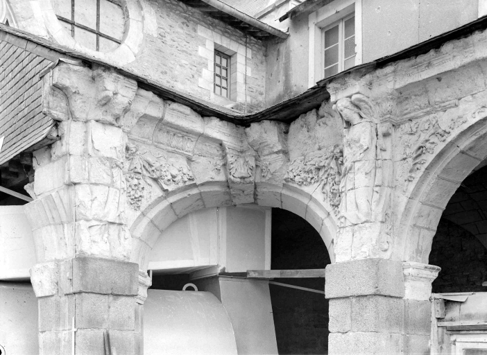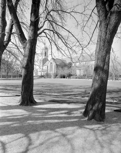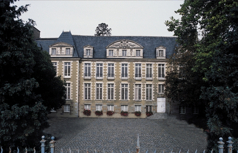 Une des principales abbayes, construites hors les murs à l'emplacement d'un ancien cimetière chrétien, à laquelle aboutit l'ancien faubourg (rue Saint-Melaine). Le palais abbatial, siège de l'évêché abritera le musée de la ville créé en 1794. Les jardins formeront le futur jardin public du Thabor. L' église primitive construite sur la tombe de saint Melaine, premier évêque de Rennes, fut incendiée vers le milieu du 7e siècle, puis reconstruite et de nouveau détruite au 10e siècle. L' église actuelle est un édifice dont les parties les plus anciennes (transept, bases de la tour du clocher) qui remontent à l' époque romane, sont l'oeuvre de Gervais, abbé de Saint-Melaine (1081-1109). Dans la 1ère moitié du 13e siècle le carré du transept est recouvert d' une voûte d' ogives (seul le départ de cette voûte est actuellement visible). Puis au 14e siècle les arcades de la nef et les fenêtres hautes sont refaites ainsi que le choeur et de nombreuses baies agrandies. De cette époque date aussi la loge seigneuriale (dont il ne reste plus que les ouvertures) située contre le mur nord du choeur. En 1432, la tour du clocher est reconstruite sur les bases romanes. En 1627 les mauristes s' installent à Saint-Melaine et se livrent à d' importantes modifications. En 1672 (daté par travaux historiques) le logis abbatial est reconstruit pour l' abbé Jean d' Estrades. En 1676, la façade du clocher est entièrement refaite en calcaire sculpté par l' atelier Corbineau qui réalise également en 1683 les galeries du cloître. En 1855, la tour du clocher, surélevée d' un étage supplémentaire par l' architecte Mellet, est couronnée d' une statue de la Vierge en plomb doré provenant des ateliers de l' abbé Choyer à Angers. L' église abbatiale est devenue paroissiale en 1791, regroupant d' anciennes paroisses supprimées dont Saint-Jean et Saint-Pierre en Saint-Georges. Elle est érigée en cathédrale provisoire de 1803 à 1844 sous le vocable de Saint-Pierre, puis elle redevient paroissiale à partir de 1844 sous le vocable de Notre-Dame. Une peinture murale du 15e siècle représentant le baptême du Christ est à signaler dans le transept sud. Une autre du 20e siècle d' André Muriel Bussy est visible dans le transept nord.