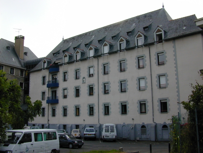 L´édifice est partiellement visible sur le plan Caze de la Bove (1783) qui figure les dénivelés de terrains successifs qui surplombent les marais bordant le site de confluence des rivières de la Vilaine et de l´Ille et le cimetière, au sud-est des bâtiments conventuels. Le cadastre de 1842 en donne une première représentation précise. Les bâtiments conventuels, de plan en L, ferment les côtés sud et est du cloître, au nord duquel se situe la chapelle. Un bâtiment isolé apparaît au sud, à l´est d´un oratoire de plan carré à pans coupés ; celui-ci est desservi par un chemin qui relie la nouvelle route de Brest et la ruelle Saint-Cyr (actuelle rue Papu). Les archives communales indiquent que l´édifice est agrandi en 1930 et 1932, par l´entrepreneur Novello, de dépendances associées aux logements de la Maison de Refuge, construite au début du 20e siècle, à l´est des bâtiments conventuels. L´architecte Couasnon dessine les plans d´une buanderie et d´une cuisine (1930) puis de bains-douches (1932) actuellement détruits, comme le bâtiment reconstruit, en 1946, par l´architecte Charles Rallé. Entre 1956 et 1965, plusieurs travaux d´agrandissement sont réalisés sur les plans des architectes Coirre et Glorot. L´extension des bâtiments conventuels, au nord, en bordure de la rue Papu est construite en 1956 ; la construction d´un dortoir et d´un réfectoire, implantés au sud, à proximité de la rue Louis-Guilloux, a lieu en 1962, suivie de celle d´une salle d´éducation physique, en 1965.