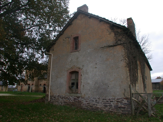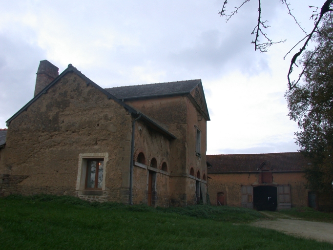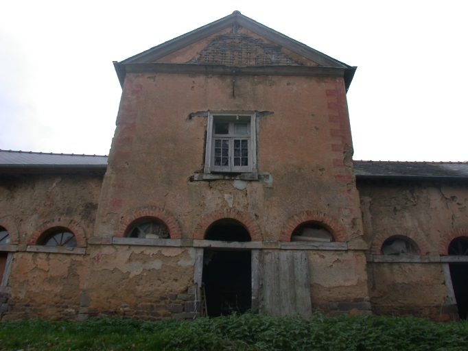 Pavillon central entouré de deux ailes plus basses. Selon les propriétaires l'enduit cache une construction en moellons de schiste. Communs en terre. Logement au dessus des écuries avec partie haute en pan de bois.