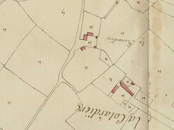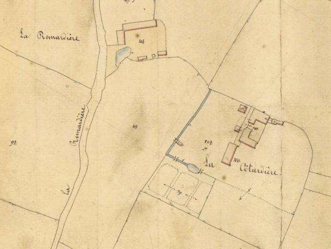 Plan géométrique parcellaire de la commune de Parthenay, section B1 dite de la Cotardière, par Alagille géomètre, [1850], échelle 1/2000e (A. D. d'Ille-et-Vilaine : 3 P 5443).