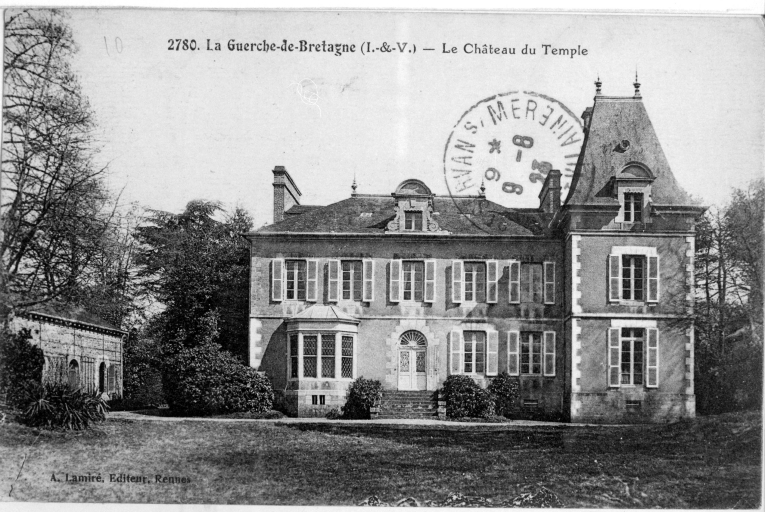 La GUERCHE-de-BRETAGNE (I.-et-V.). Château du Temple. Carte postale, La Guerche : [s.n.], cliché Touin-Guiné, [s.d.]. (A.D. Ille-et-Vilaine : 6 Fi).