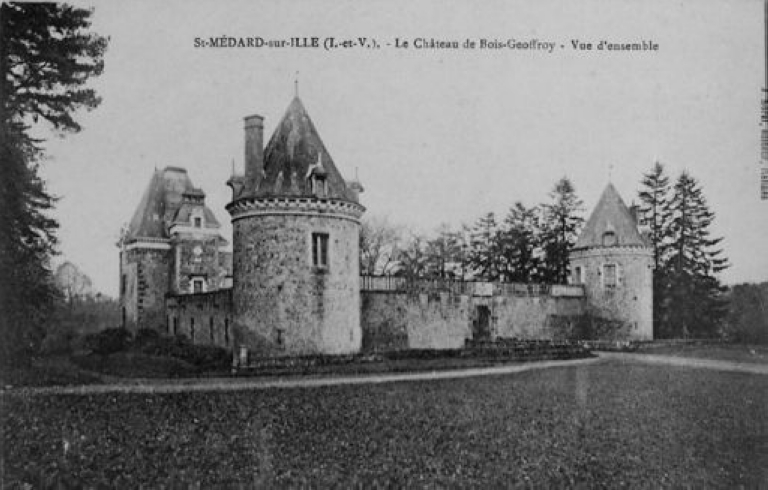 Saint-Médard-sur-Ille (I.-et-V.). L'entrée du Château du Bois Geffroy. Carte postale. E. Mary-Rousselière, édit., Rennes [s.d.] (A.D. Ille-et-Vilaine 6Fi).