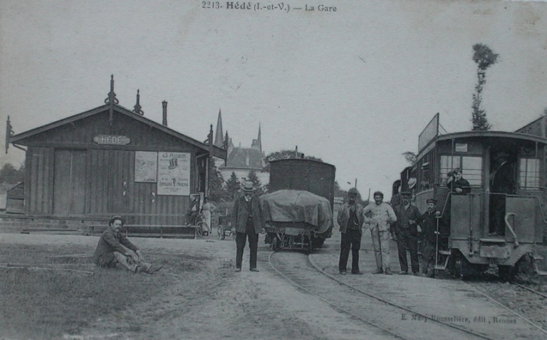 En 1893, la municipalité décide que la gare sera construite au bout de la ruelle des Courtillets. Elle a disparu aujourd'hui, toutefois, des cartes postales du début du 20e siècle nous permettent d'en connaître l'aspect. Elle était située rue du Chemin Horain, à l'emplacement de l'école publique actuelle et du château d'eau. Le TIV, train à voie métrique, dont la ligne allait jusqu'à Saint-Malo, a fonctionné jusque dans les années 1950.