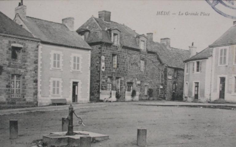 HEDE (I.-et-V.). La Grande Place. Carte postale éditée par J. Sorel, édit., Rennes, [s. d.] (A.D. Ille-et-Vilaine 6 Fi).