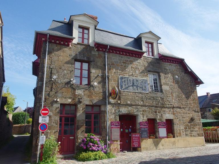 La construction de ce bâtiment date très vraisemblablement du 17e siècle. Certaines caractéristiques architecturales de ce bâtiment sont en effet propres à cette époque de construction : corniche à corbelets de bois, maçonnerie de pierre de taille de granite, toit à la Mansart... Le bâtiment actuel correspond seulement à une partie du bâtiment originel qui était beaucoup plus grand, comme l'indique son plan sur le premier cadastre de la commune datant de 1835. Ainsi, la partie est de la construction aurait brûlé au milieu des années 1960 ; un autre incendie a eu lieu dans la partie ouest dans les années 1970. A l'origine, la partie ouest possédait un plan en L avec une tour d'escalier à pans coupés à l'intersection des deux corps de bâtiment. Aujourd'hui, cette tour n'est plus visible car elle a été englobée dans une construction neuve réalisée dans les années 1970 au nord-ouest du bâtiment primitif. Si certaines particularités de l'architecture de ce bâtiment sont caractéristiques du 17e siècle, comme le toit à la Mansart par exemple, il existe d'autres éléments qui semblent plus anciens. Ainsi, l'ancienne tour d'escalier ainsi qu'une porte à coussinets située sur le mur est actuel évoquent plutôt le 15e siècle. Au début du 20e siècle, Paul Banéat signalait ce lieu comme étant l'ancienne Maison et Hôtellerie de l'Ecu de France. A cette époque, un hôtel, l'Hôtel de l'Ecu occupait ce bâtiment.