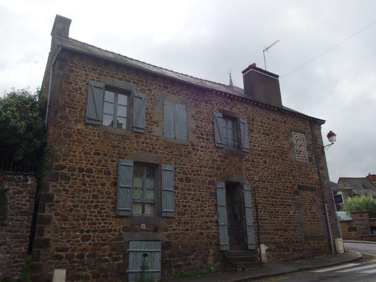 La façade sud de cette maison est élevée en pierre de taille de granite ; les autres murs sont construits en moellon. La toiture à croupes est couverte d'ardoise et surmontée d'épis de faîtage. Le bâtiment possède un plan en L ; il existe en effet un corps de bâtiment perpendiculaire au nord-ouest. La façade sur la place est percée de trois travées, composées d'ouvertures à encadrements de granite. Les encadrements de baies et les chaînages d'angle de la construction sont en bossage. Par ailleurs, les baies de l'étage possèdent des garde-corps en fer forgé ; il existe un balcon devant la baie centrale. Les baies possèdent des lambrequins.