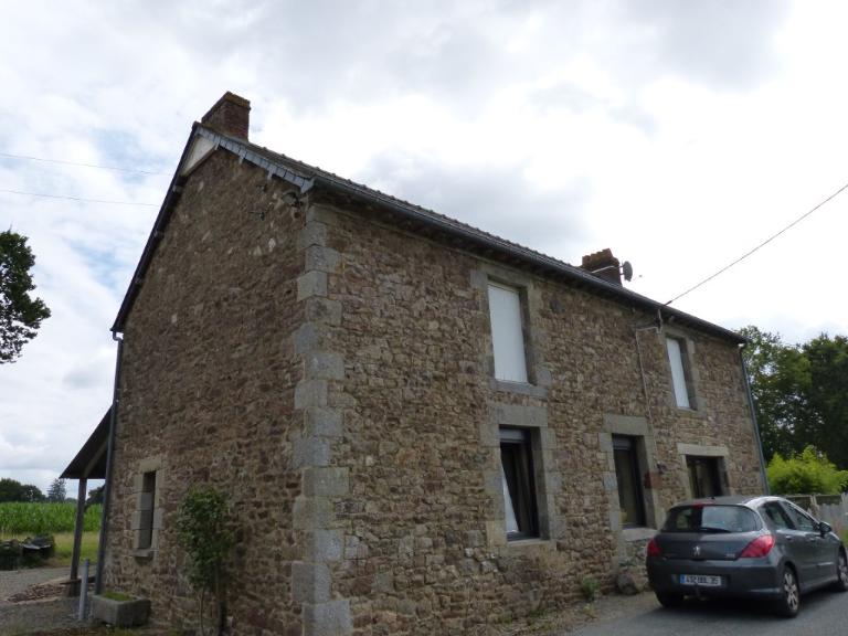 Le logis de cette ferme est construit en moellon de granite et couvert d'ardoise. Les encadrements de baies et les chaînages d'angle sont en pierre de taille de granite. Le rez-de-chaussée est composé de deux pièces à feu ; il est surmonté d'un grenier dans un comble à haut surcroît. Deux portes hautes permettent l'accès au grenier. Au contraire du logis, la grange est construite en terre.