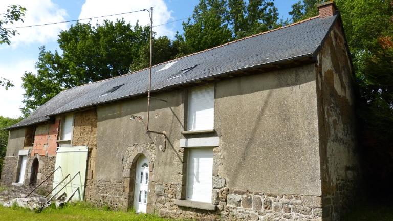 En 1835, lorsque le premier cadastre de la commune fut réalisé, il existait, à cet emplacement, un alignement de trois logis. De ces trois logis, n'en subsiste qu'un ; il s'agit de la partie ouest du bâtiment, qui possède encore une porte en plein cintre en granite. Cette partie est datable de la seconde moitié du 17e siècle ; la porte en plein cintre, la pente de toit importante et la présence d'une corniche composée de corbelets de bois sculptés en attestent. La partie est du bâtiment abrite un ancien logis composé d'une pièce à feu en partie est et d'une dépendance en partie ouest.
