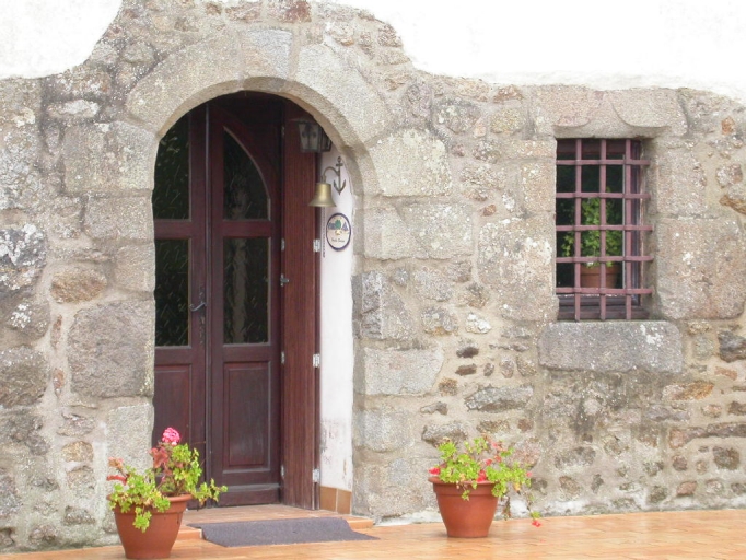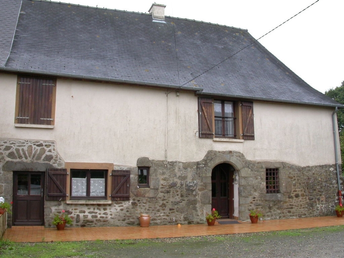 Cette ancienne ferme est construite en moellon de granite et en terre enduite ; elle possède une toiture à croupes couverte d'ardoise. Les baies originelles de la façade présentent des encadrements de granite ; il existe une porte en plein cintre, deux portes jumelées à linteaux droits et une fenêtre dont le linteau est décoré d'une accolade notamment. Le comble à haut surcroît est percé de deux portes hautes pendantes.
